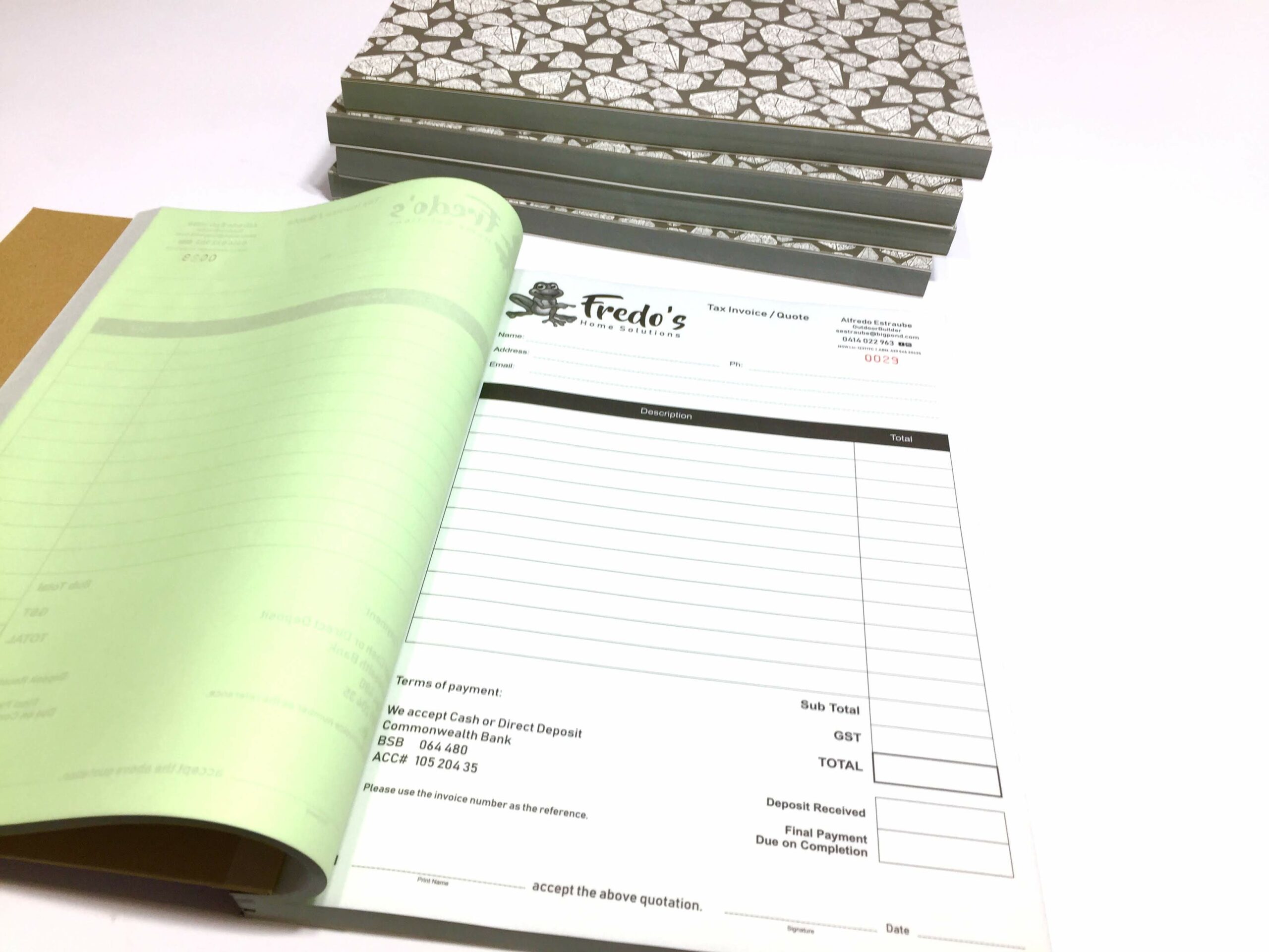 Fully Customised docket books. Complete with your own company branding and business details.